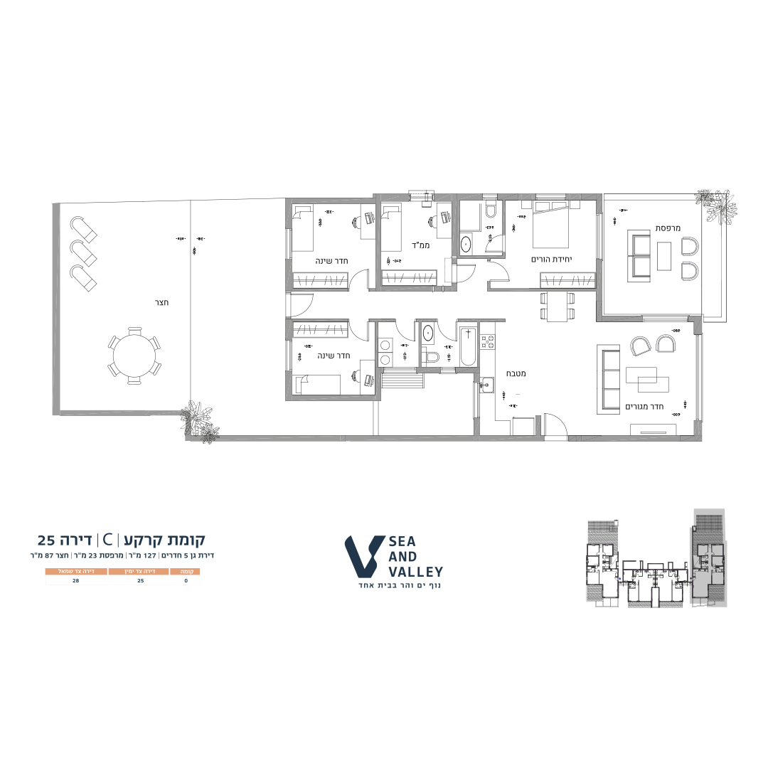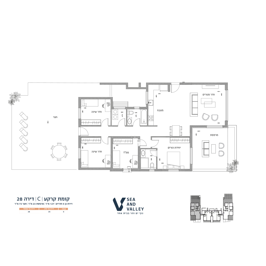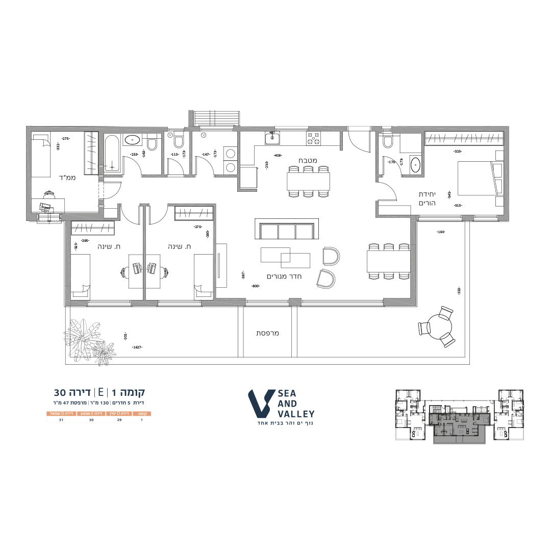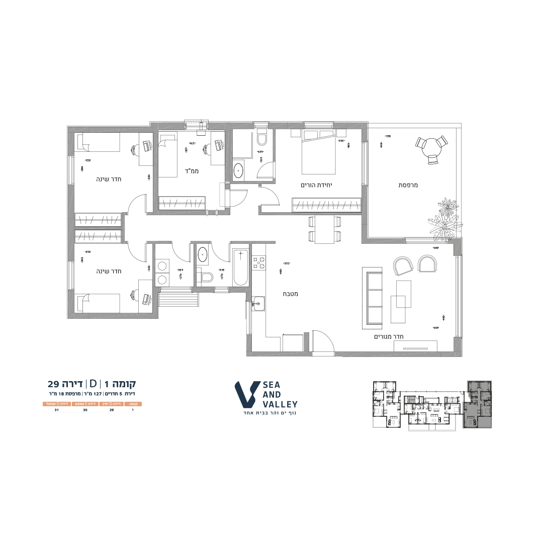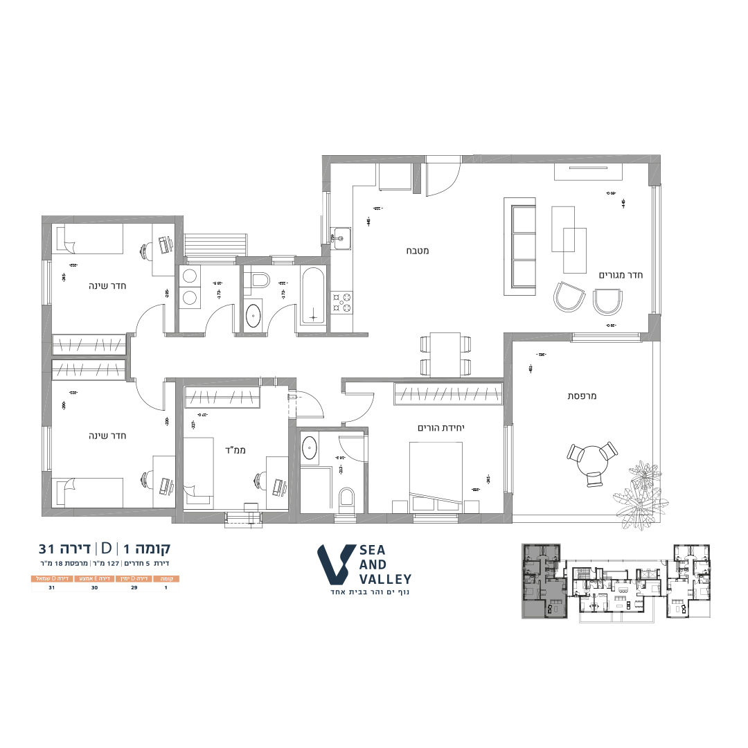 דירה מס' 31: דירת 5 חד' 127 מ"ר + מרפסת 18 מ"ר