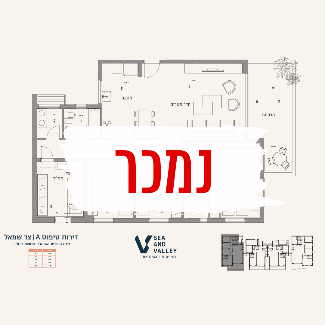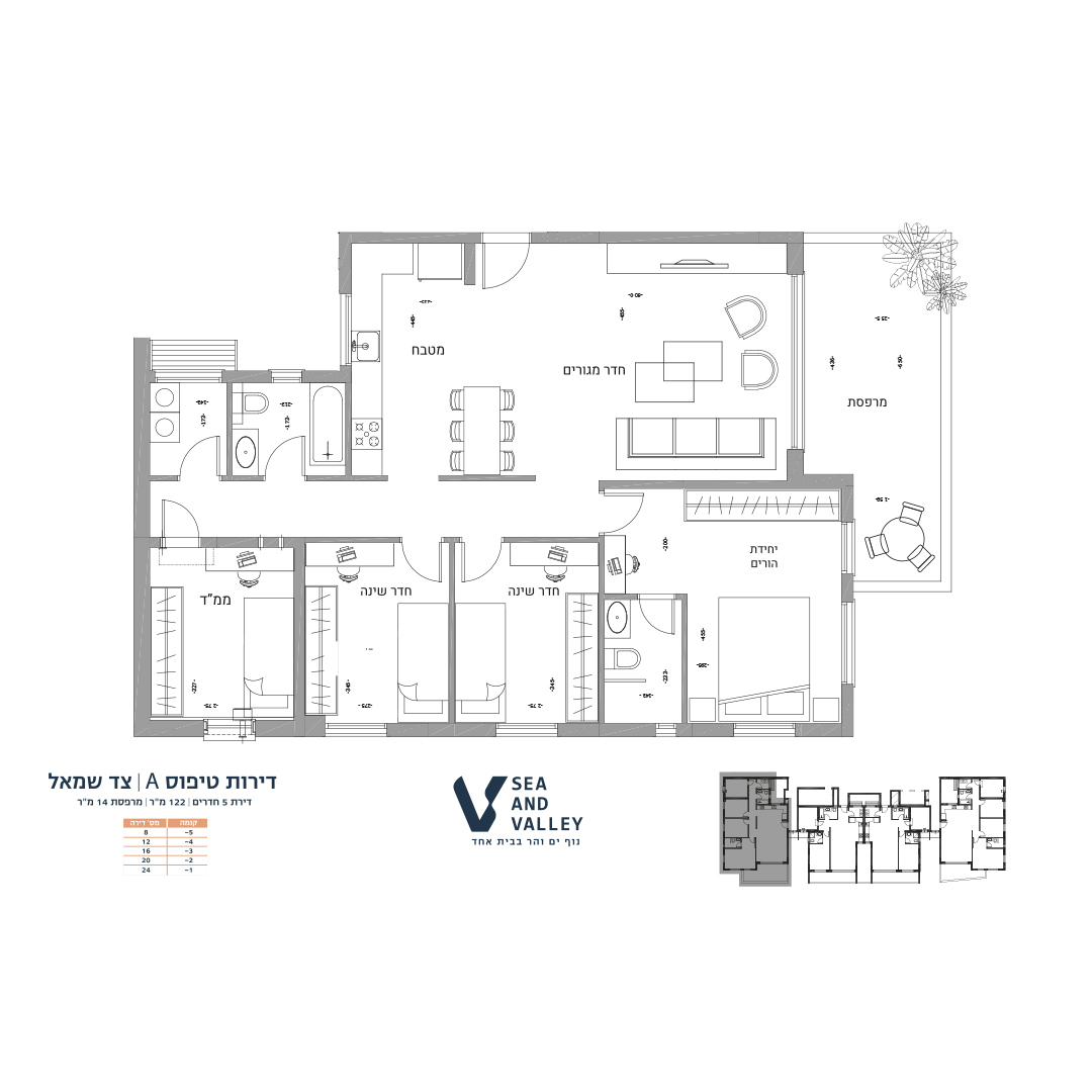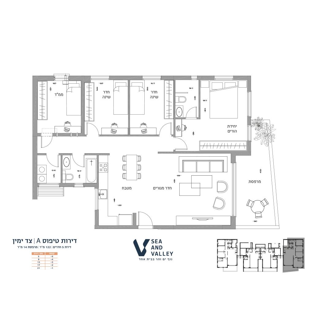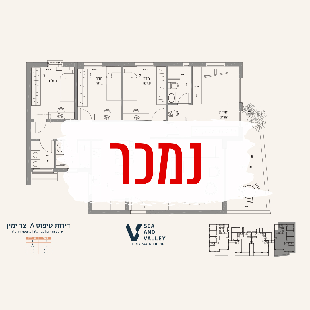 דירות 5 חד' 122 מ"ר + מרפסת 14 מ"ר (צד ימין)