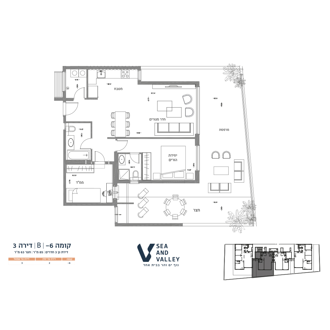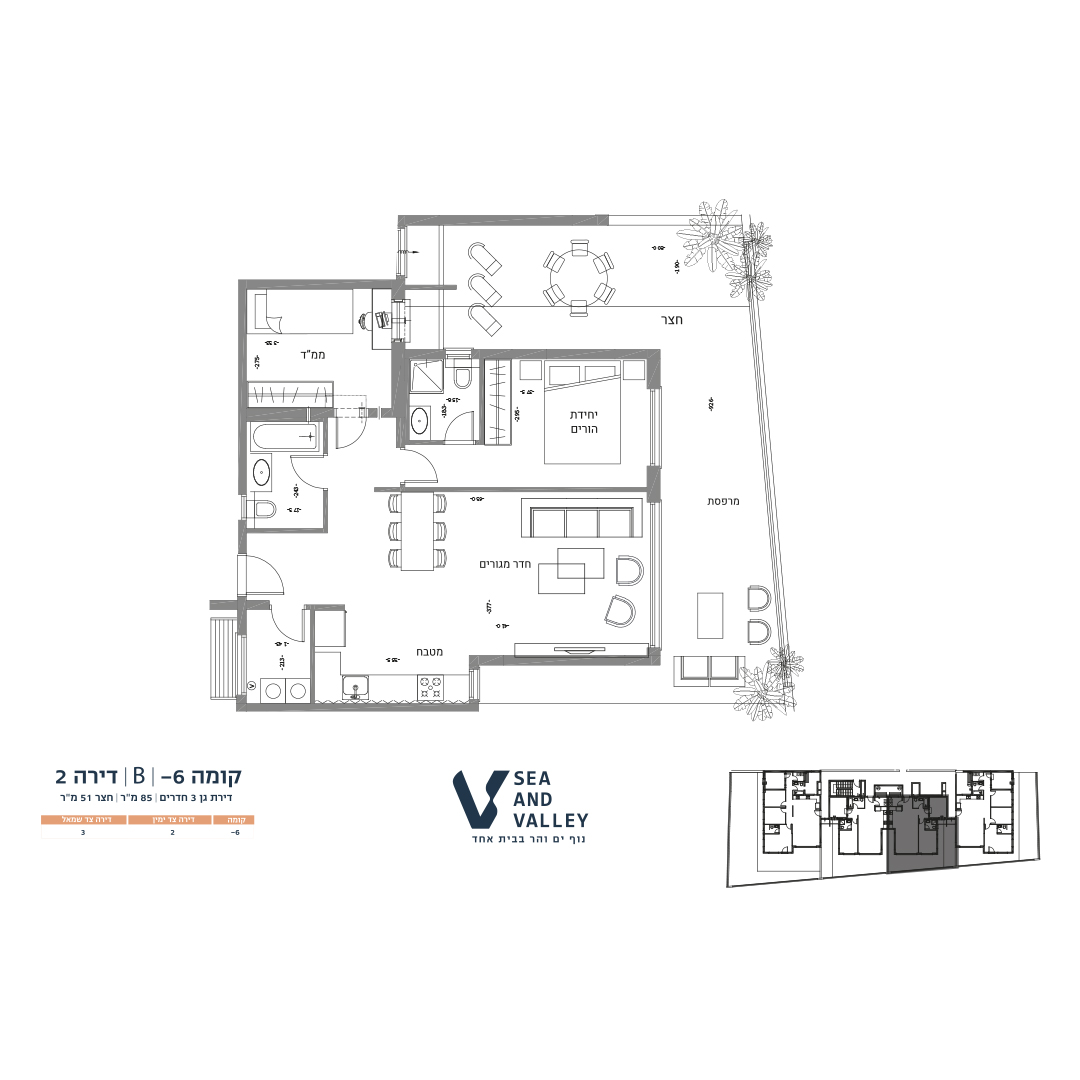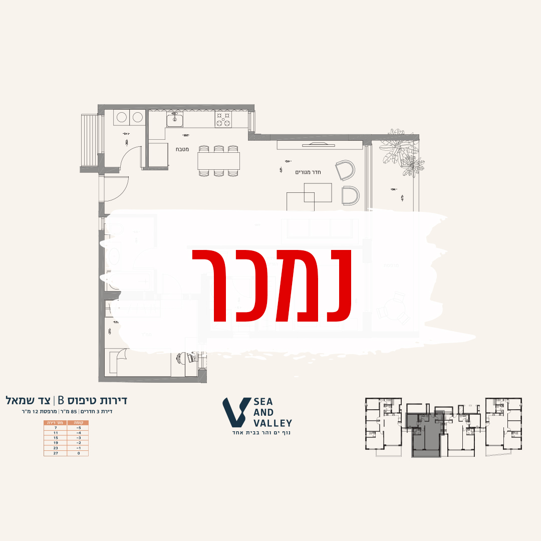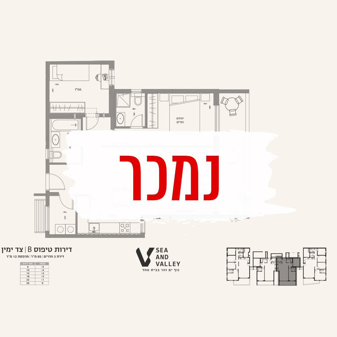 דירת 3 חד' 85 מ"ר + מרפסת 12 מ"ר (צד ימין)