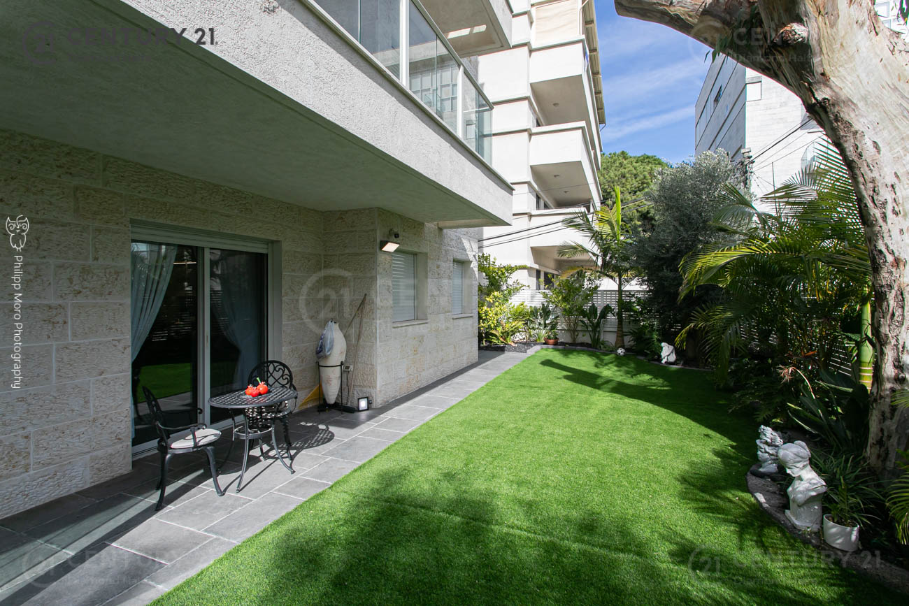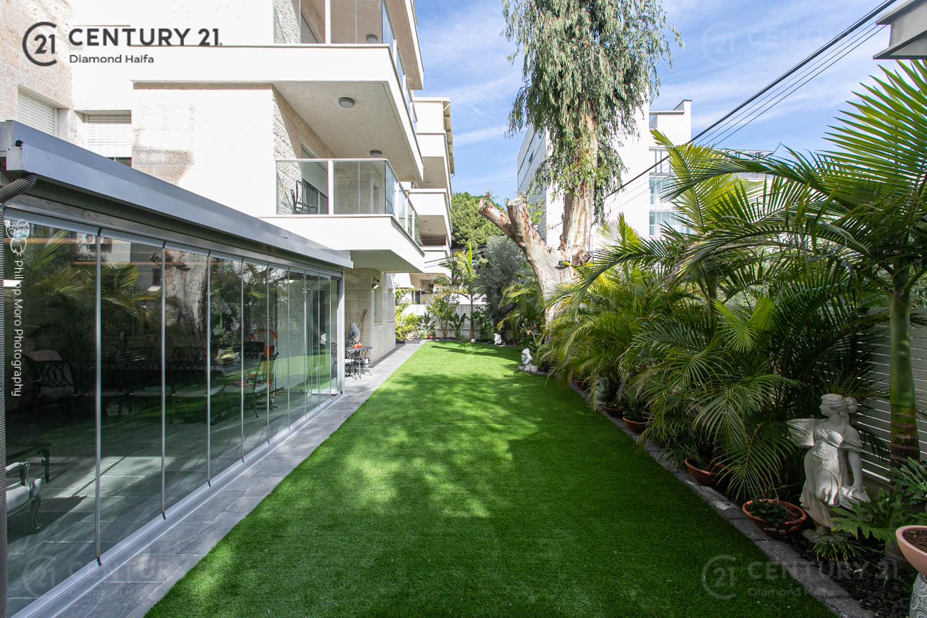במרכז הכרמל ברח' כיכר היינריך היינה, בבניין חדש – דירת גן נדירה 3 חד' מעוצבת ברמה גבוהה + גינה מהסלון