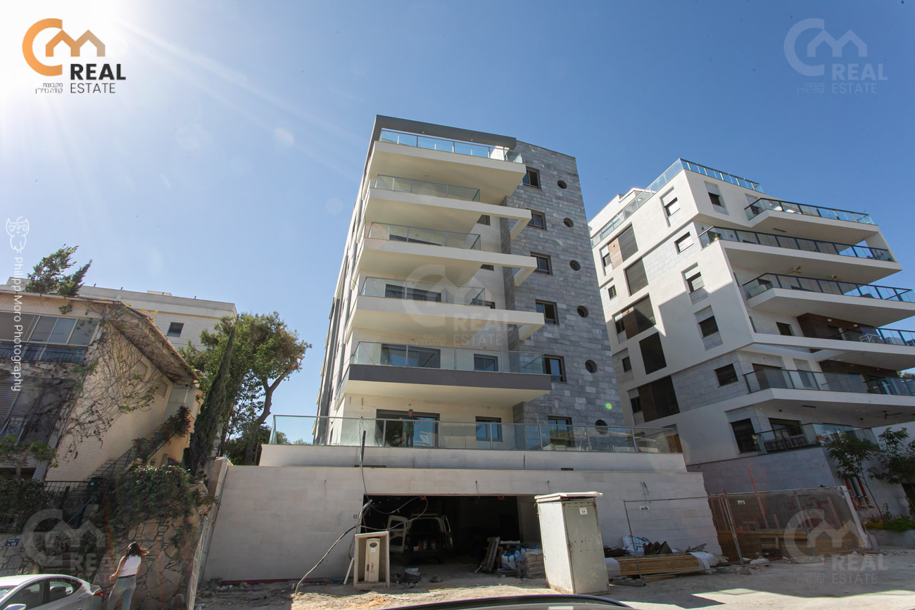 באחוזה ברח' אהוד, בבניין חדש – דירת גן 5 חד' 159 מ"ר שטוחה + מרפסת גן גדולה 75 מ"ר, חלל אירוח גדול ומרווח