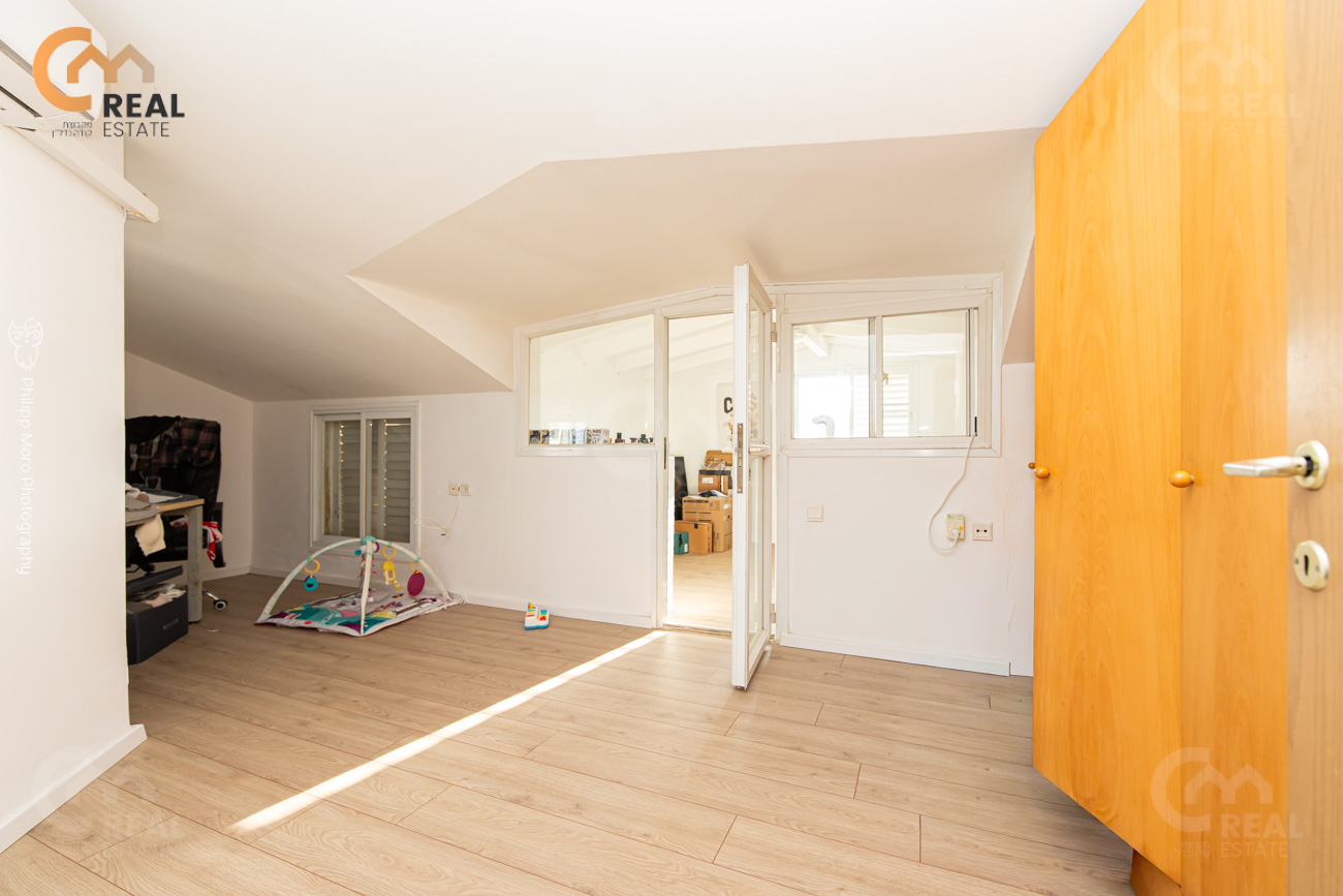 במפלס הסלון 2 חדרי שינה (יח' הורים ועוד חדר); בקומה עליונה: 3 חדרי שינה.