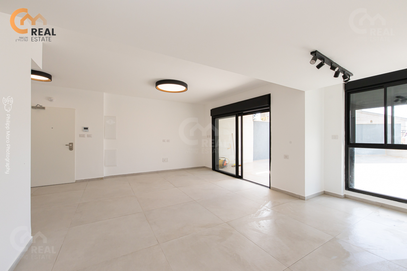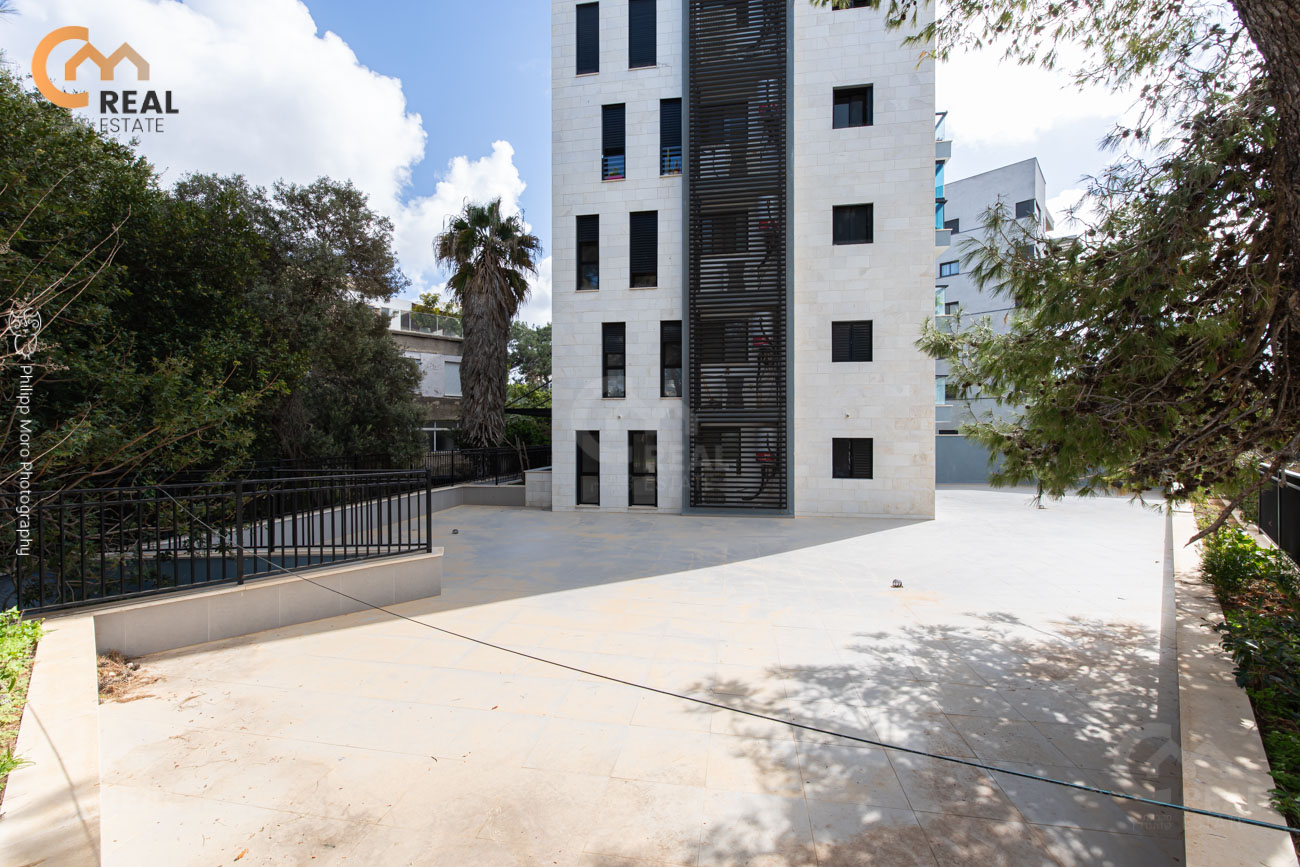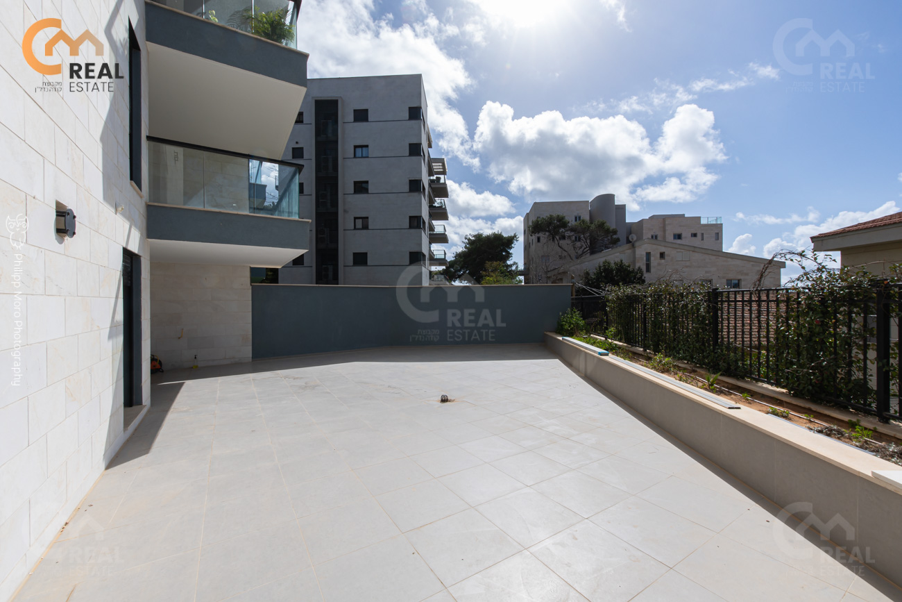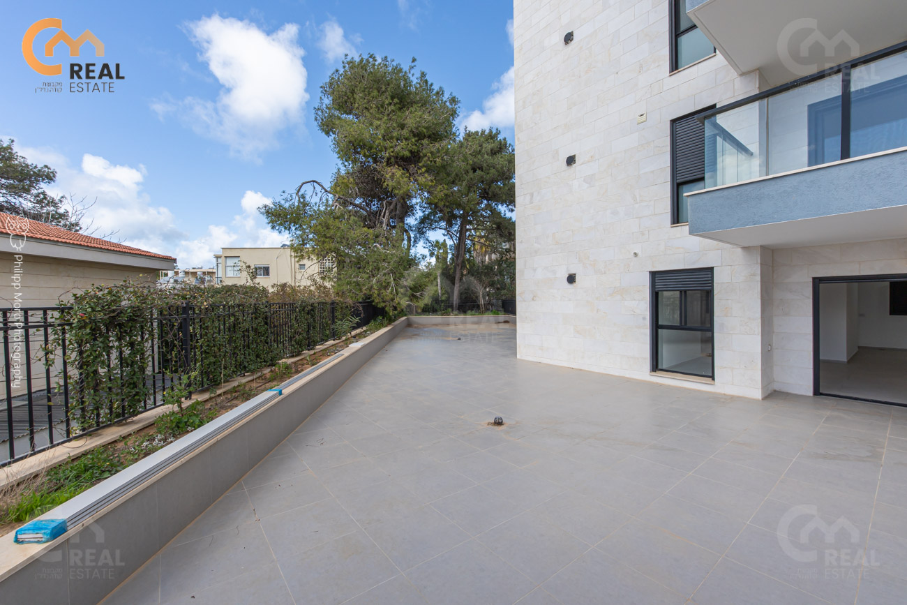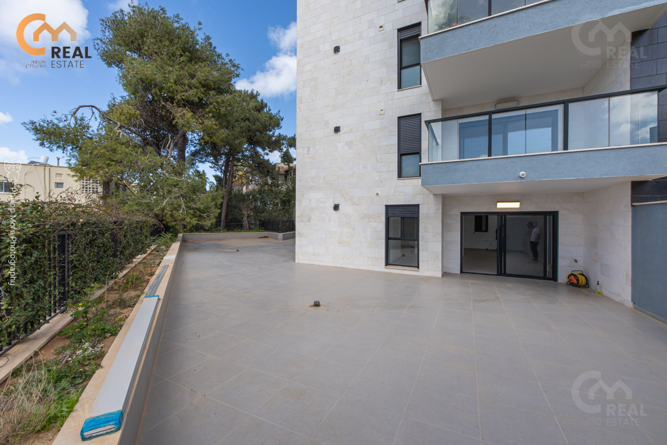 באחוזה ברח' אהוד, בבניין חדש – דירת גן 5 חד' 159 מ"ר שטוחה + מרפסת גן גדולה 75 מ"ר, חלל אירוח גדול ומרווח