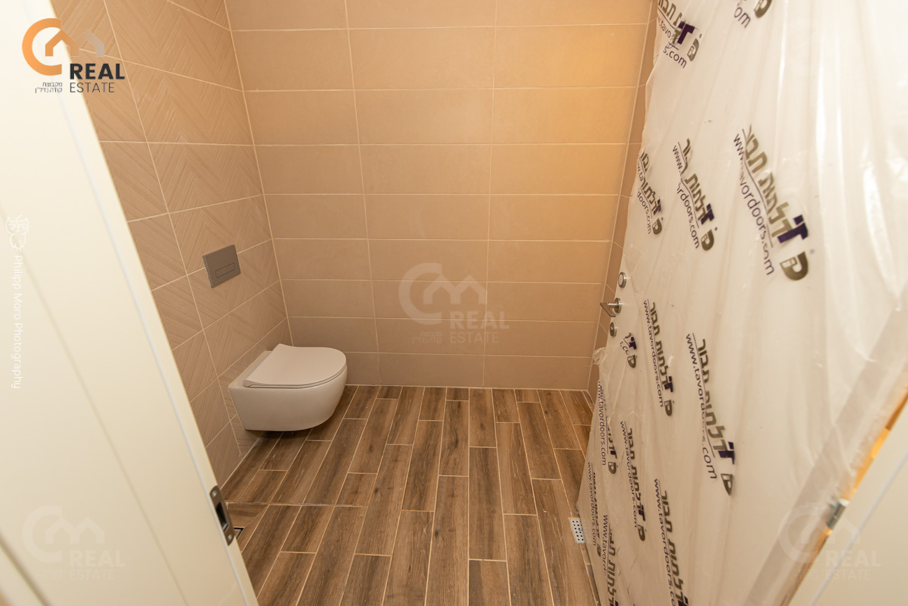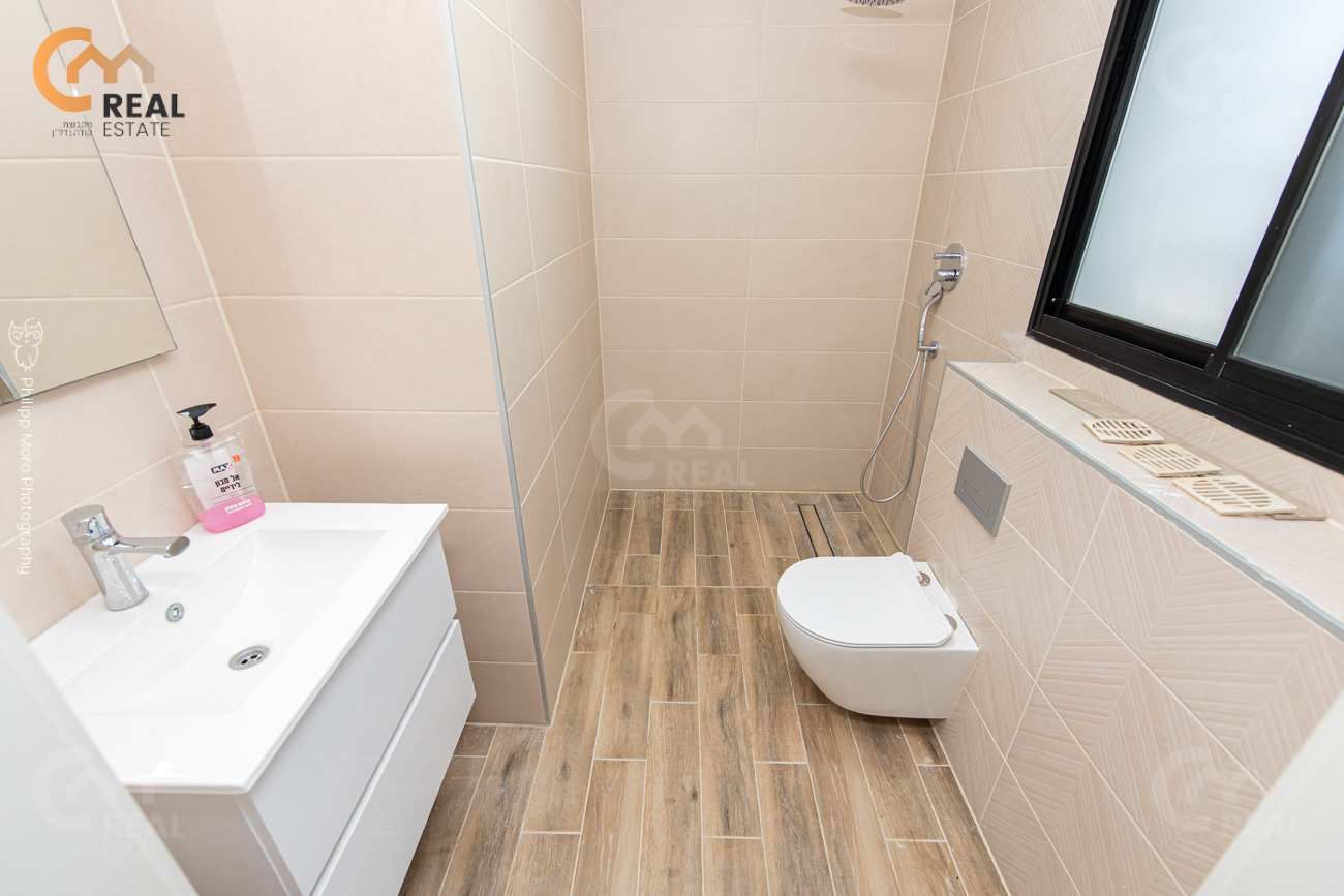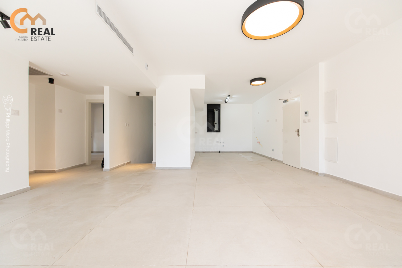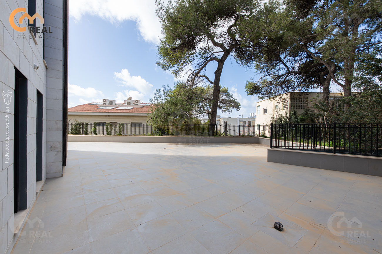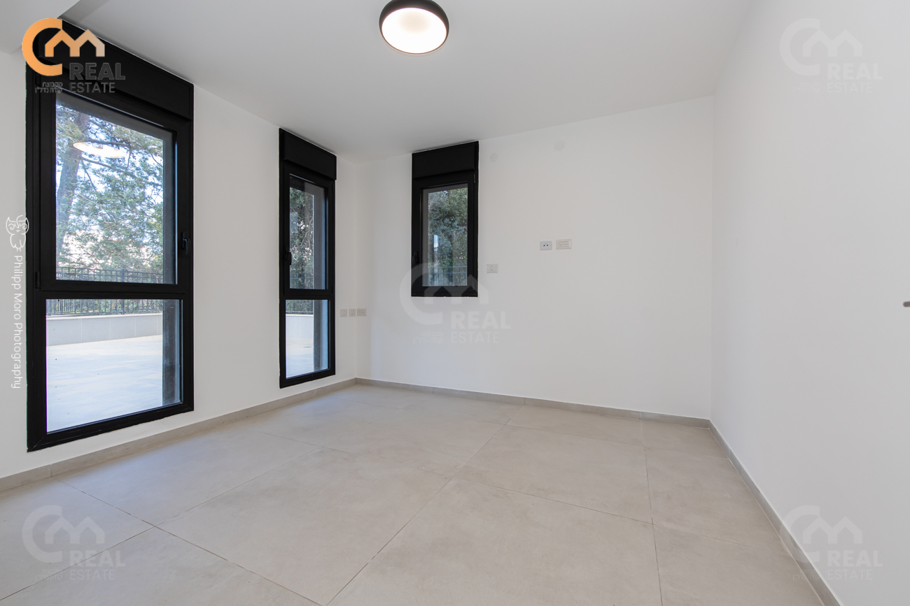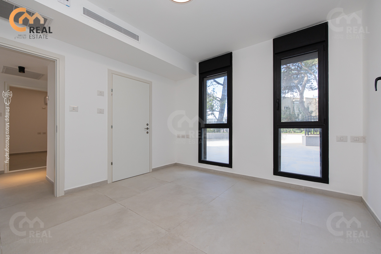 באחוזה ברח' אהוד, בבניין חדש – דירת גן 5 חד' 159 מ"ר שטוחה + מרפסת גן גדולה 75 מ"ר, חלל אירוח גדול ומרווח