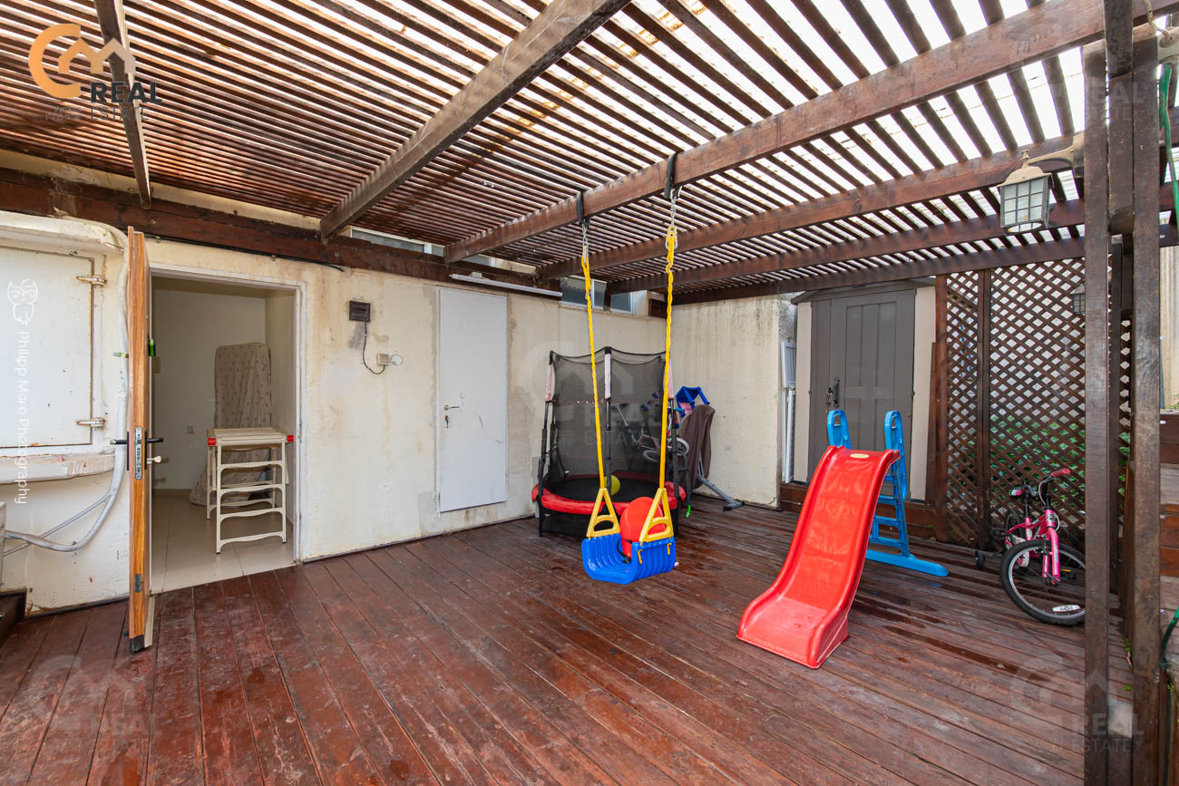 מרפסת שמש מהסלון כ- 30 מ"ר + חצר כ- 20 מ"ר,