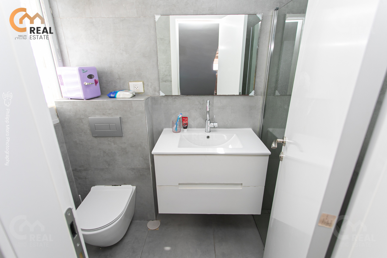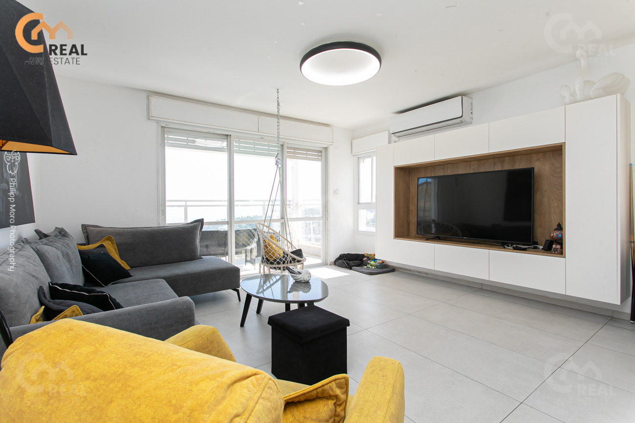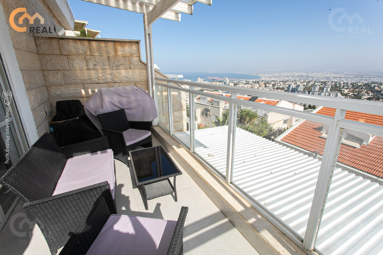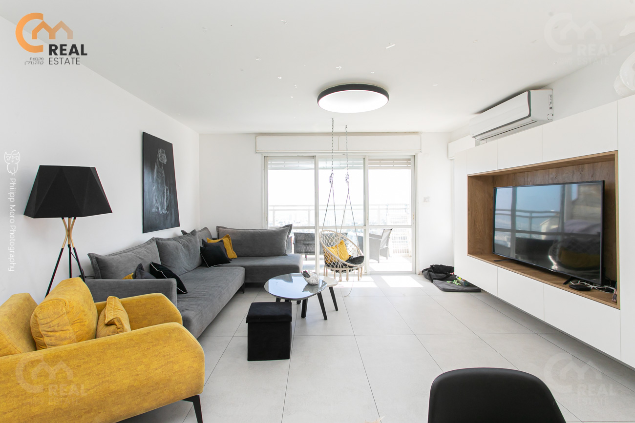 מרפסת שמש מהסלון פונה לנוף ים, ממ"ד, מחסן, חניה.