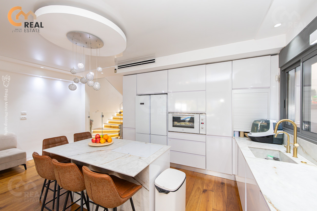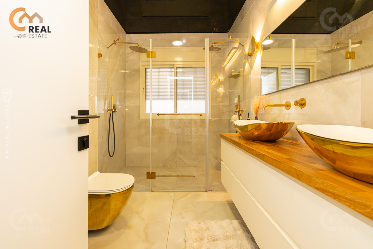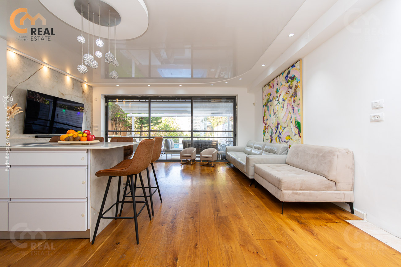 באחוזה ברח' אהוד, בבניין חדש – דירת גן 5 חד' 159 מ"ר שטוחה + מרפסת גן גדולה 75 מ"ר, חלל אירוח גדול ומרווח