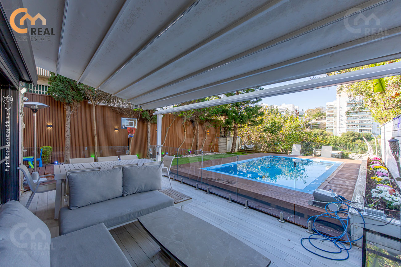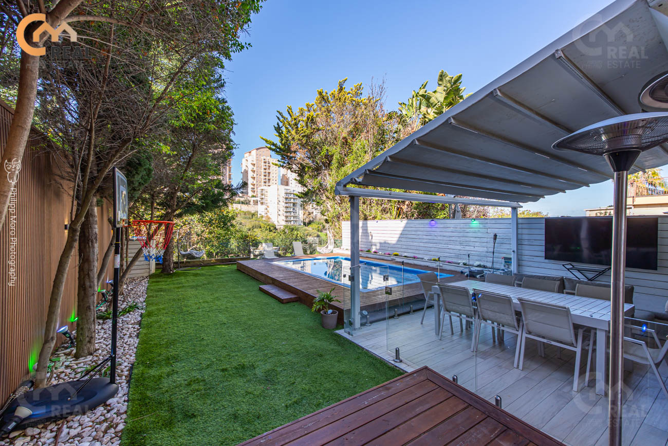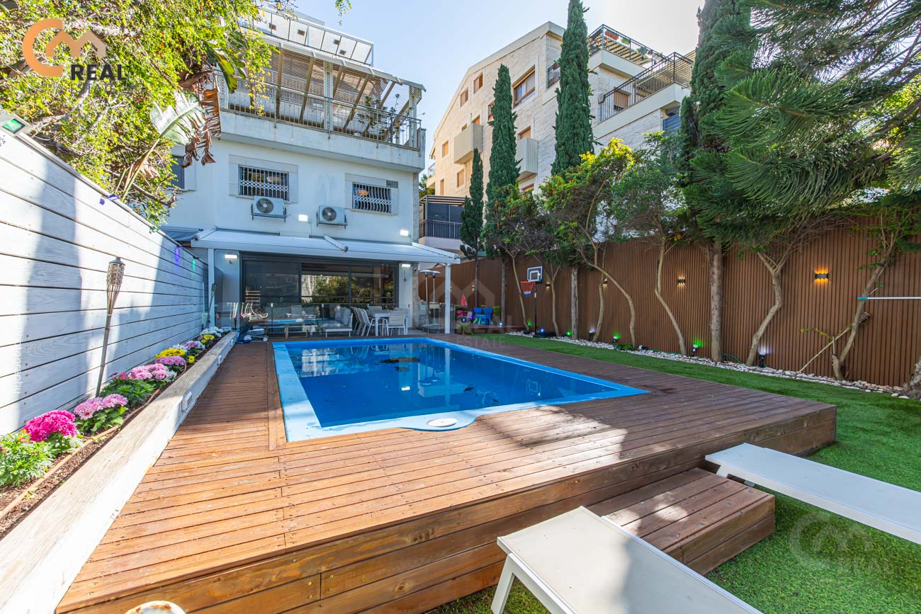 גינה מטורפת 205 מ"ר עם בריכת שחיה מובנית. חניה פרטית ומחסן.