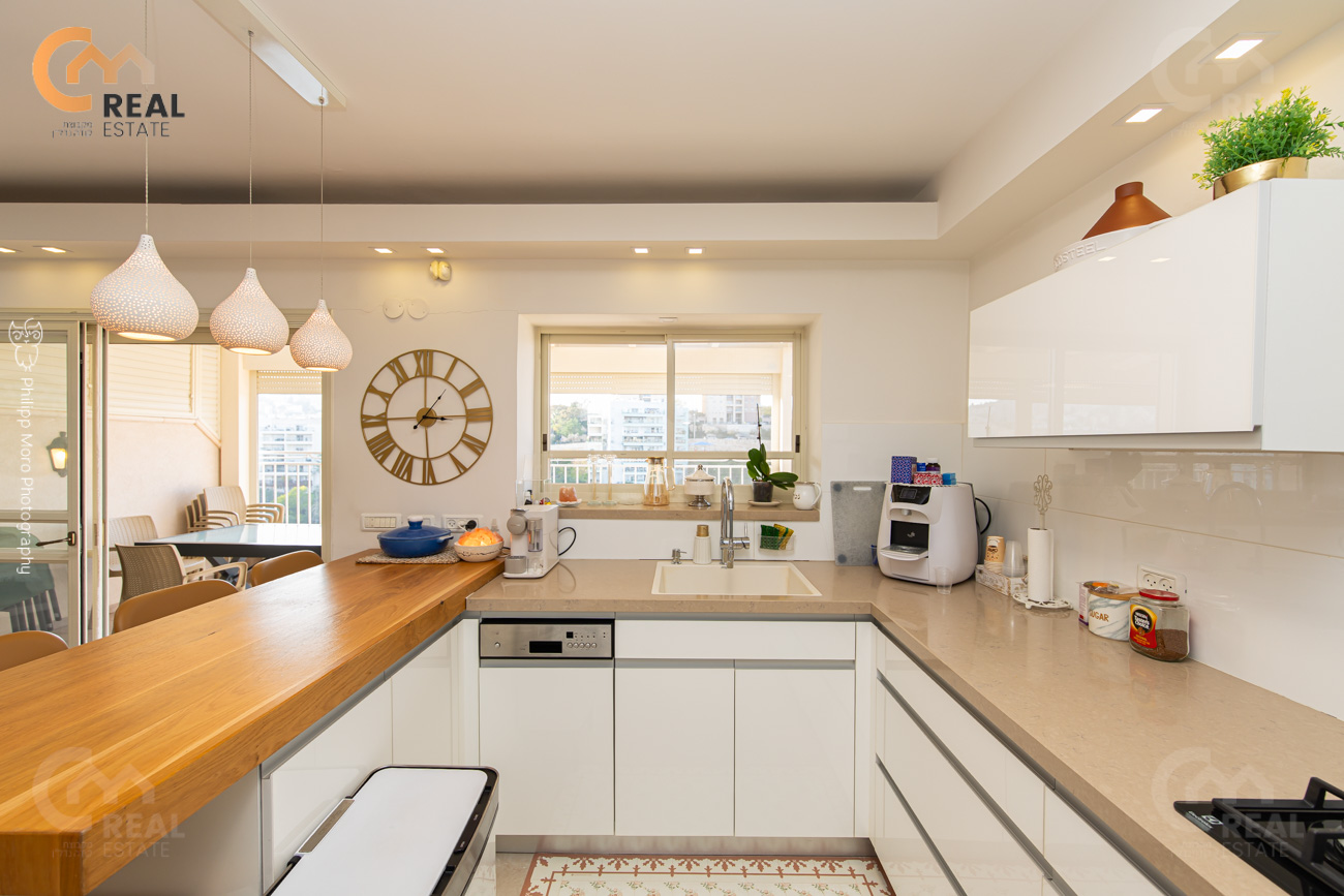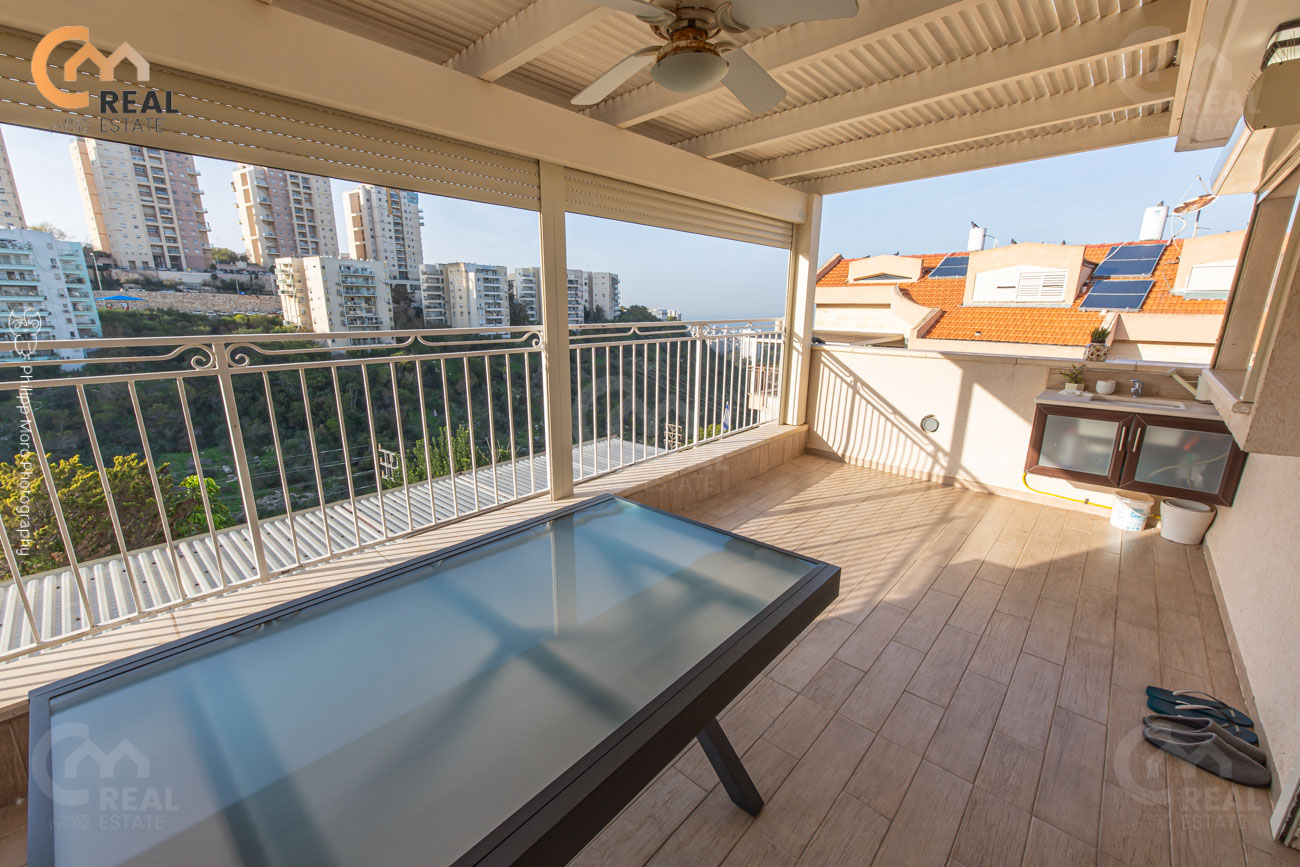 מרפסת שמש 20 מ"ר לפונה נוף ים והרים פתוח, מטבח משודרג.
