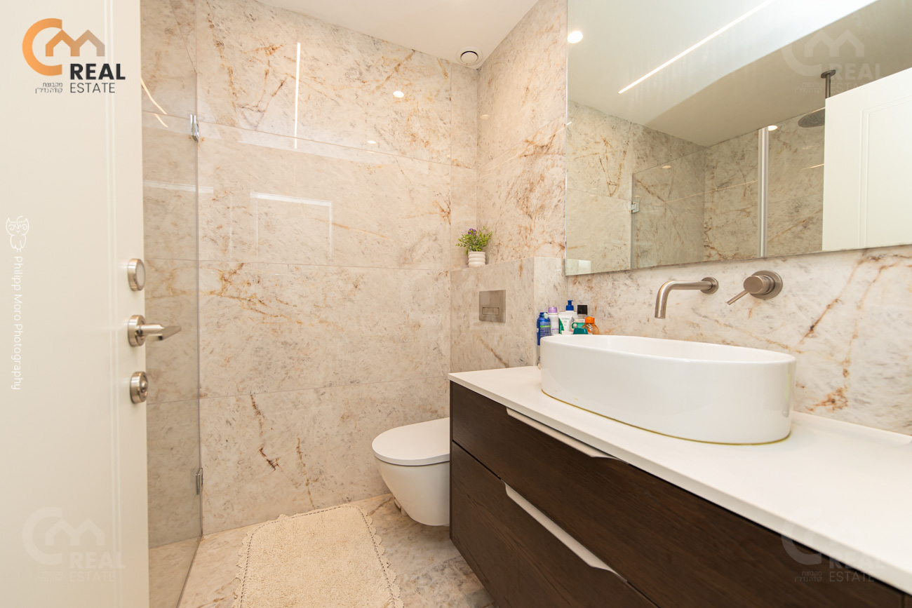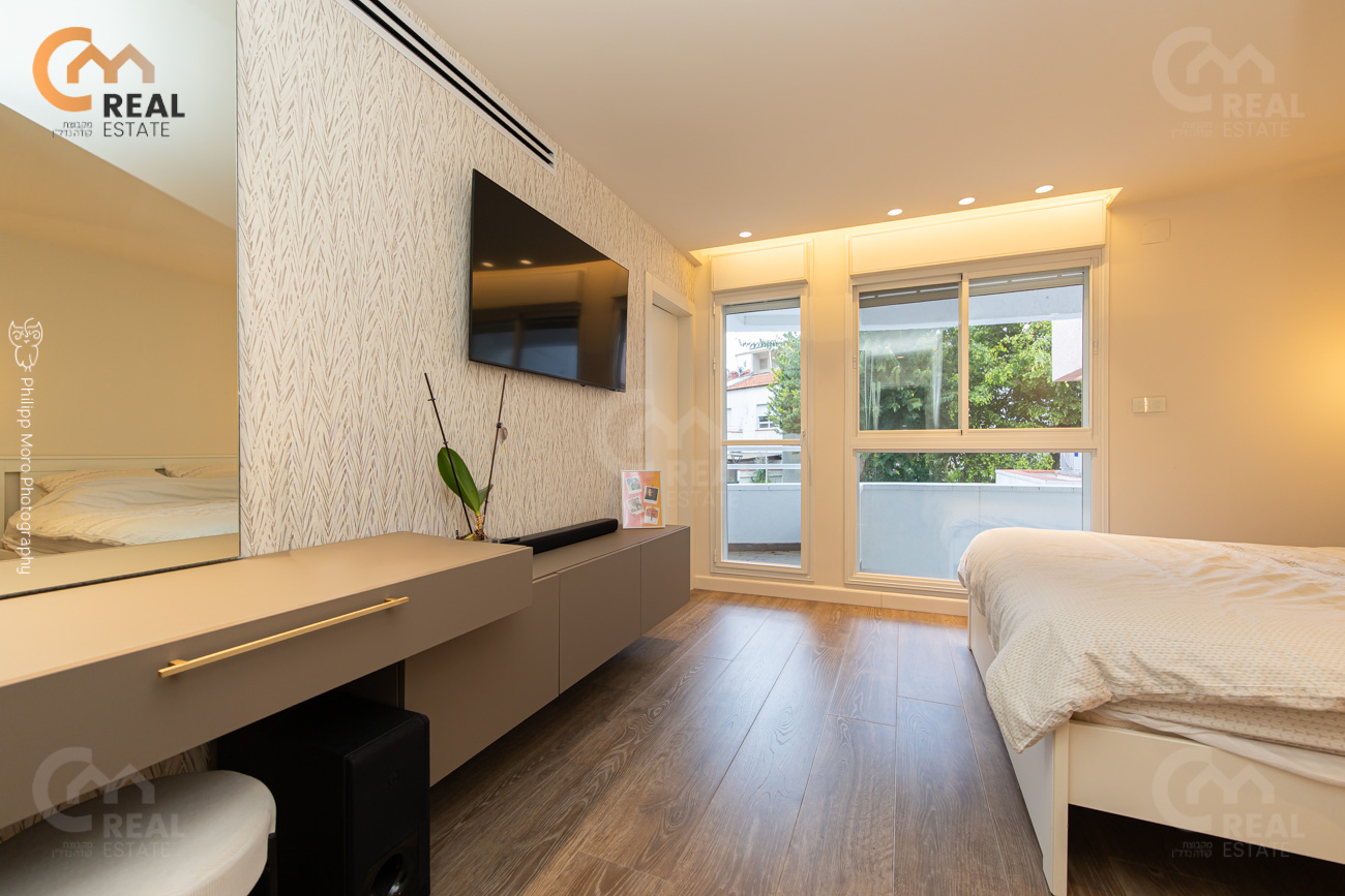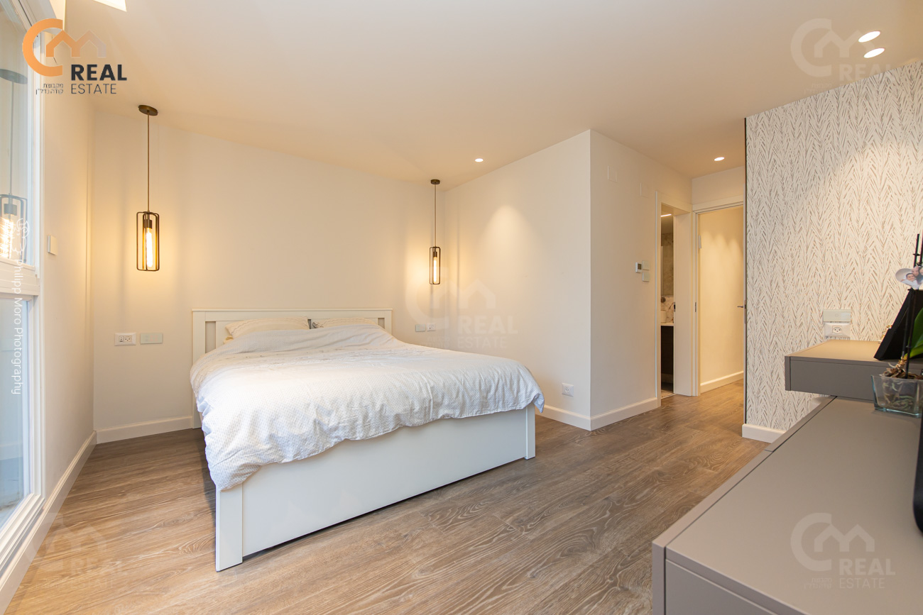 באחוזה ברח' אהוד, בבניין חדש – דירת גן 5 חד' 159 מ"ר שטוחה + מרפסת גן גדולה 75 מ"ר, חלל אירוח גדול ומרווח