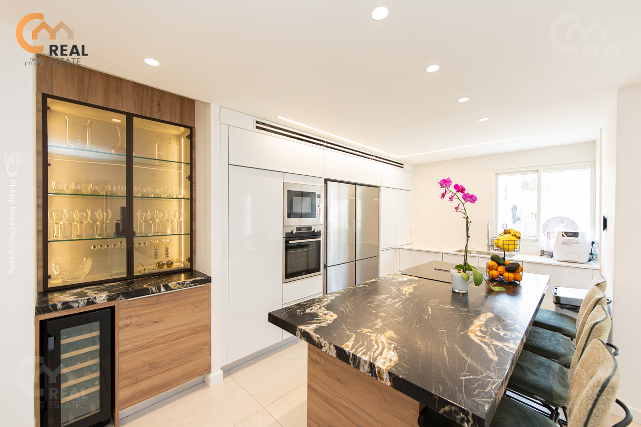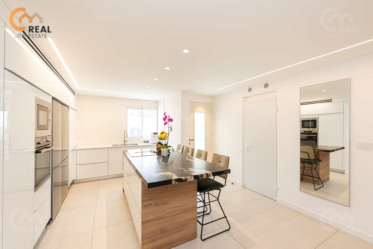 בית חכם, תריסי אור, מזגני VRF, מטבח מפואר, מערכת סראונד לגינה וקולנוע ביתית, מטבח חוץ.