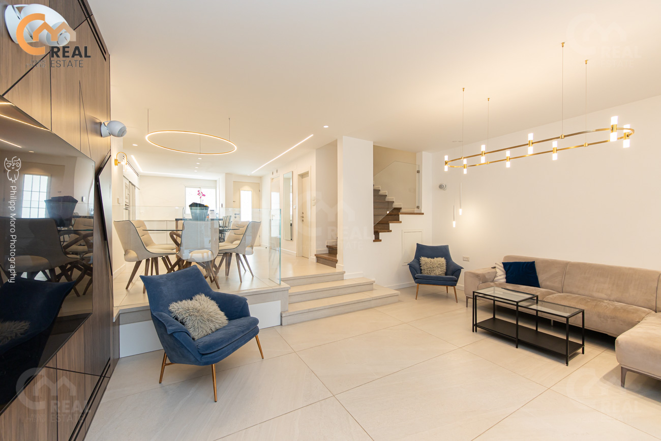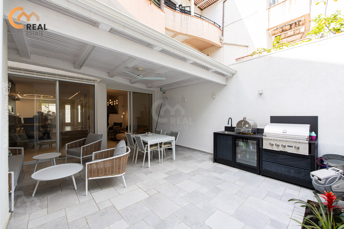 דירת גן משגעת (דו-מפלסית) 5 חד' כ- 150 מ"ר, משופצת מהיסוד ומעוצבת אדריכלית ברמה גבוהה מאוד,