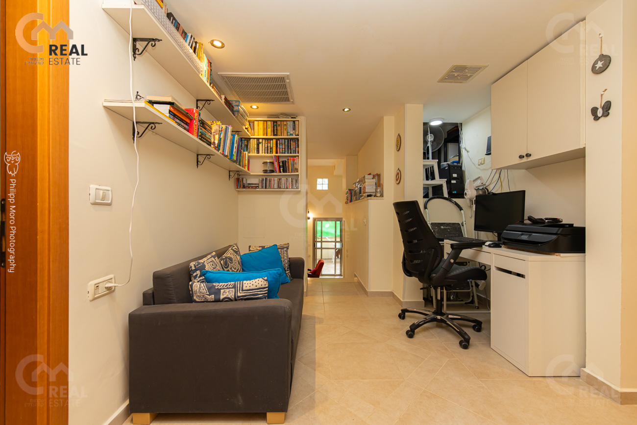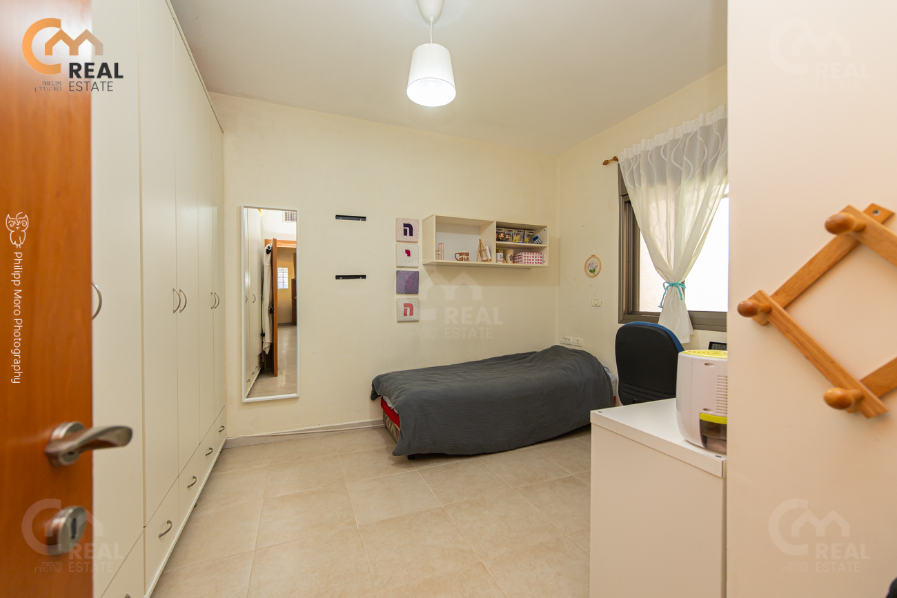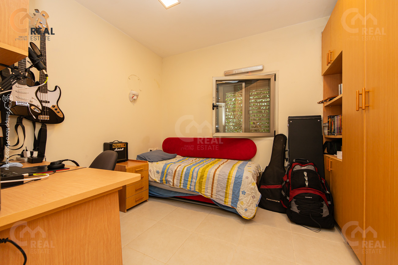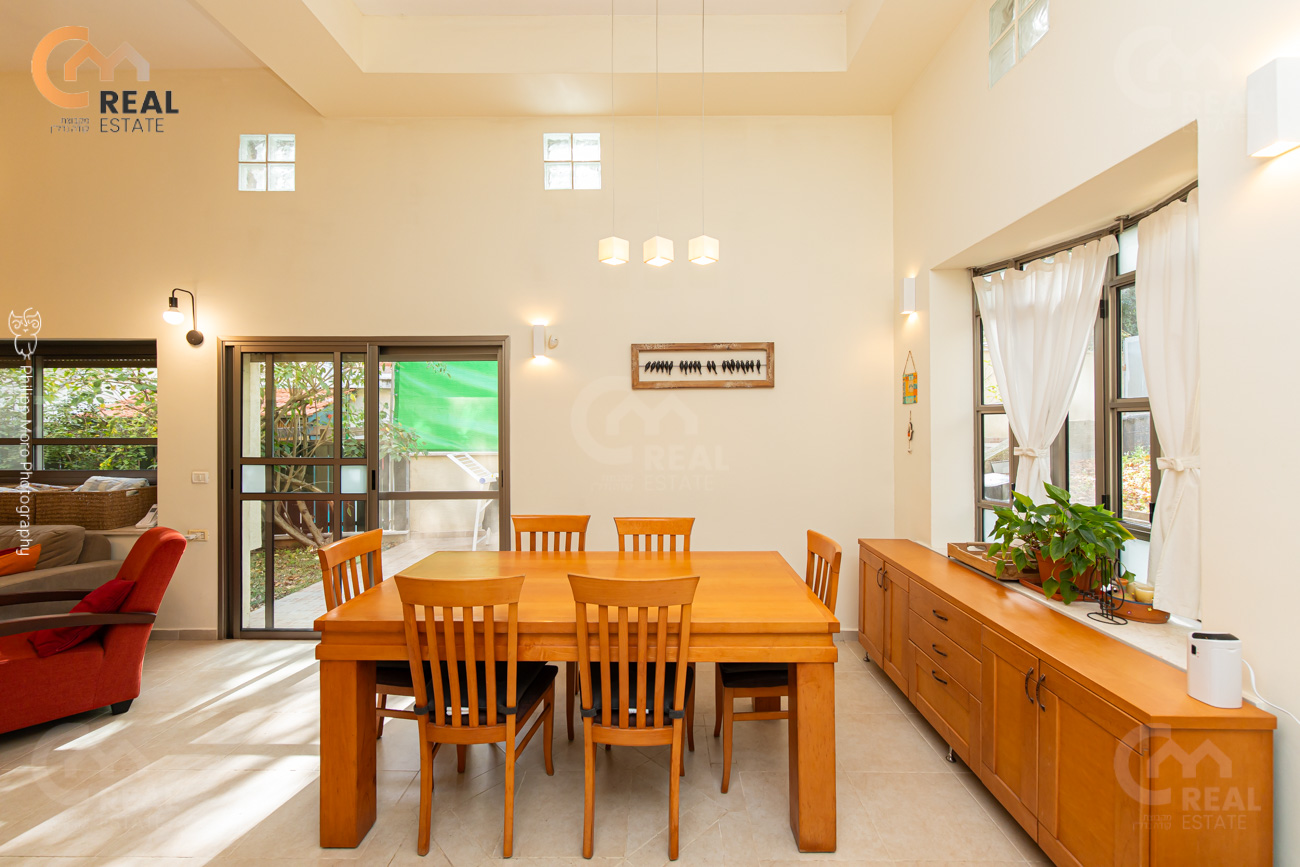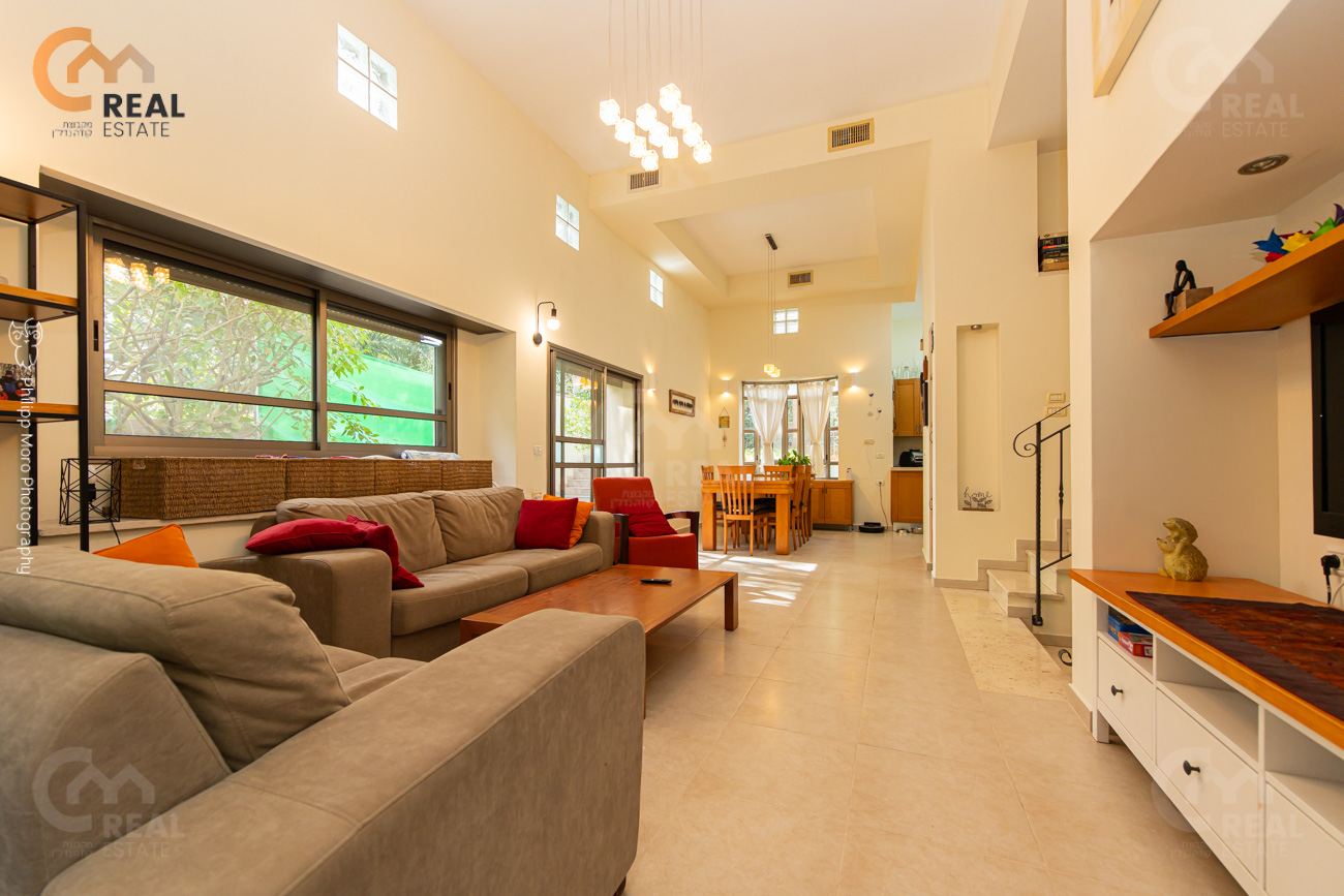 סלון מרווח, תקרות גבוהות, גינה 118 מ"ר, כניסה נפרדת, ממ"ד, יח' הורים, מחסן.