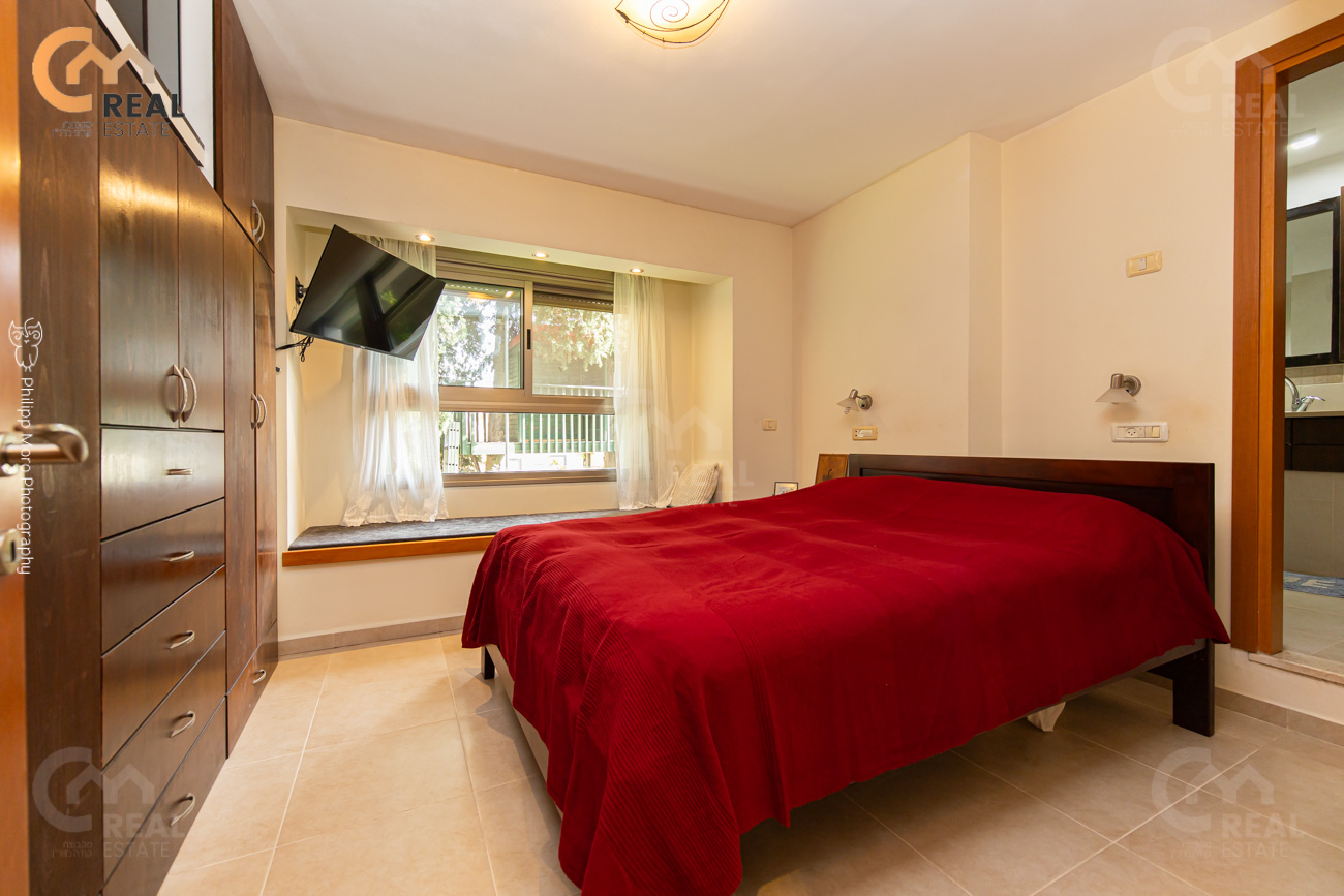 באחוזה ברח' אהוד, בבניין חדש – דירת גן 5 חד' 159 מ"ר שטוחה + מרפסת גן גדולה 75 מ"ר, חלל אירוח גדול ומרווח